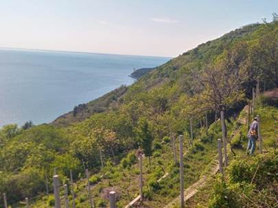 Dopo una sosta per ammirare la costruzione ed il panorama dai terrazzamenti della chiesa si prende il sentiero di destra, contrassegnato con il segnavia Cai n. 12. Dopo poco incontreremo la “vedetta d’Italia”, un posto per ammirare il panorama e forse costruita sui resti di un antico forte.