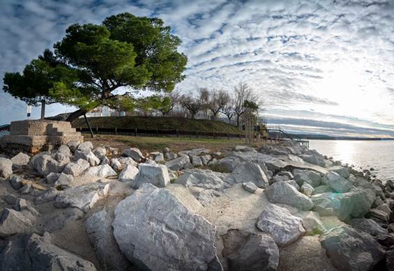 Muggia si apre sul golfo di Trieste con i suoi insediamenti che dalle colline scivolano sino al mare. Testimonianze dei suoi primi insediamenti risalgono all’età del bronzo, circa al 1660 a.C., come lo testimoniano il Castelliere di Elleri, luogo non solo di importanti scavi archeologici ma anche punto di partenza di un percorso turistico-didattico che, con i reperti conservati nel Museo Archeologico del centro storico e le vestigia medievali del parco archeologico di Muggia Vecchia, offre un ampio panorama sulle origini della città. Salendo per pochi chilometri lungo il crinale a sud-ovest del centro di Muggia si giunge alla basilica romanica di Santa Maria dell’Assunta, antico edificio del Castrum Muglae, rimaneggiato nel corso dei secoli. Da qui lo sguardo spazia sul vasto panorama del golfo e del Vallone di Muggia dove nella Valle delle Noghere e alla foce del torrente Rosandra, che un tempo delimitava il confine del territorio, si estendevano le saline fondamentali per l’economia locale basata sull’agricoltura e la pesca.
