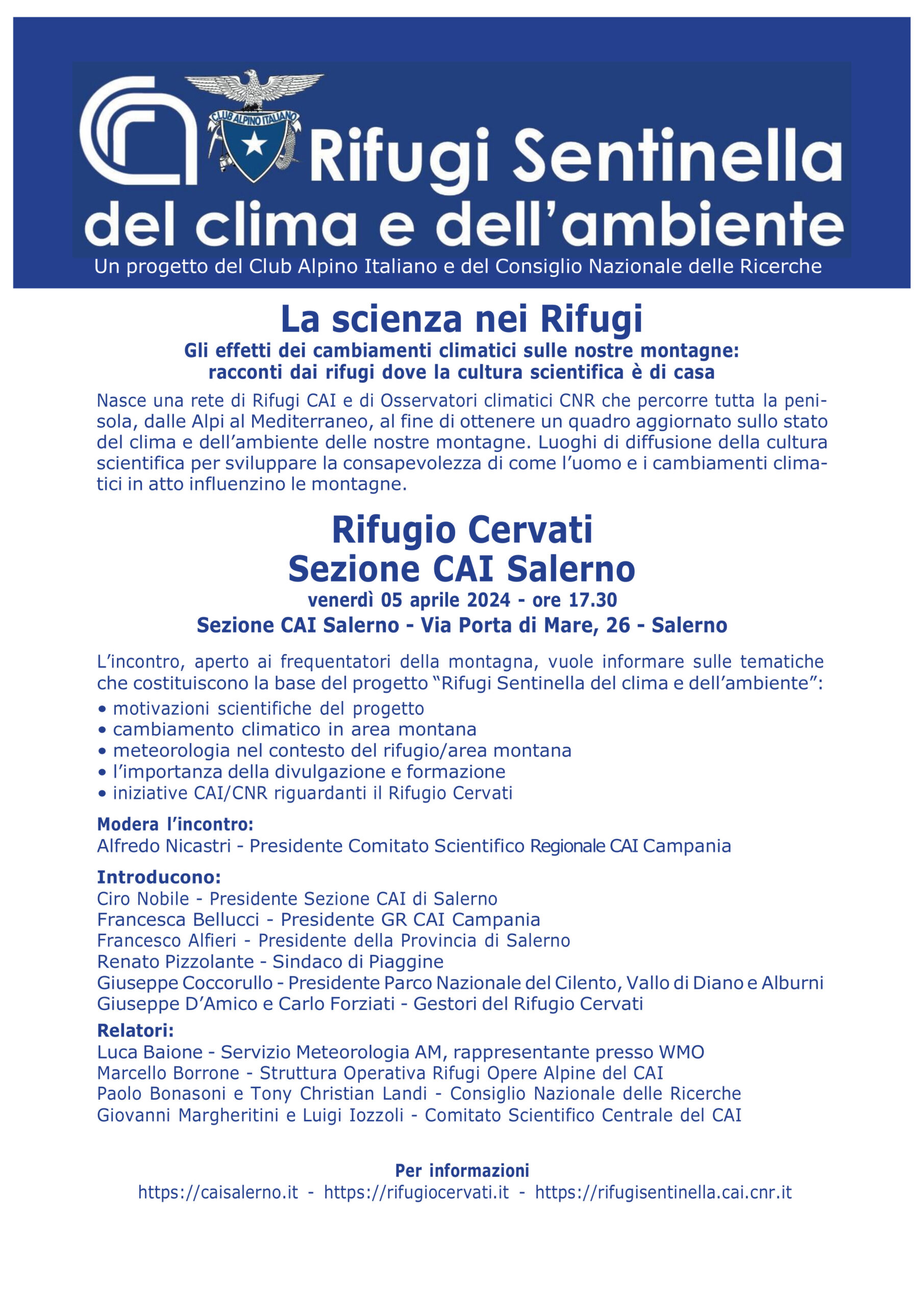 Un progetto del Club Alpino Italiano e del Consiglio Nazionale delle Ricerche